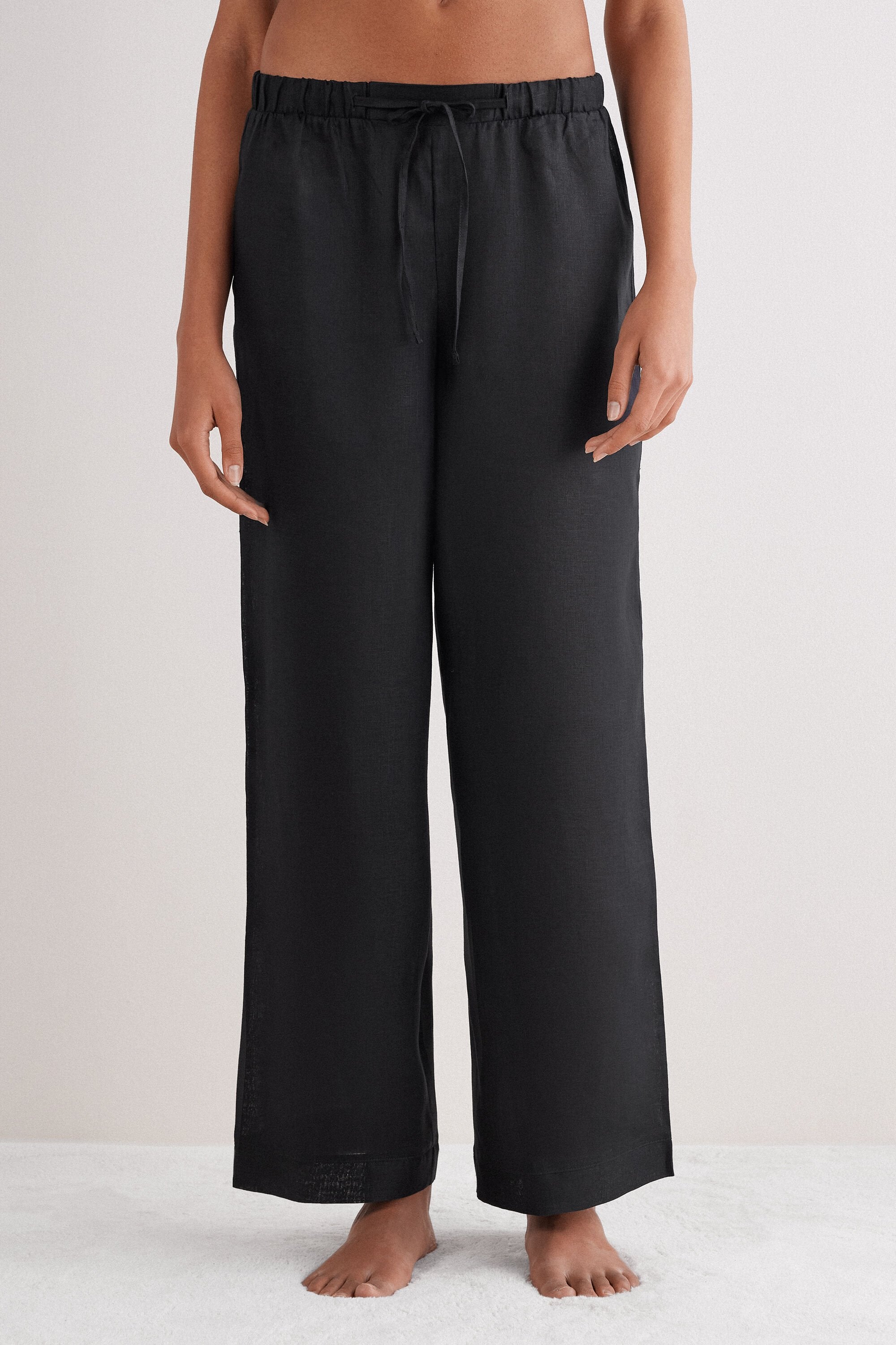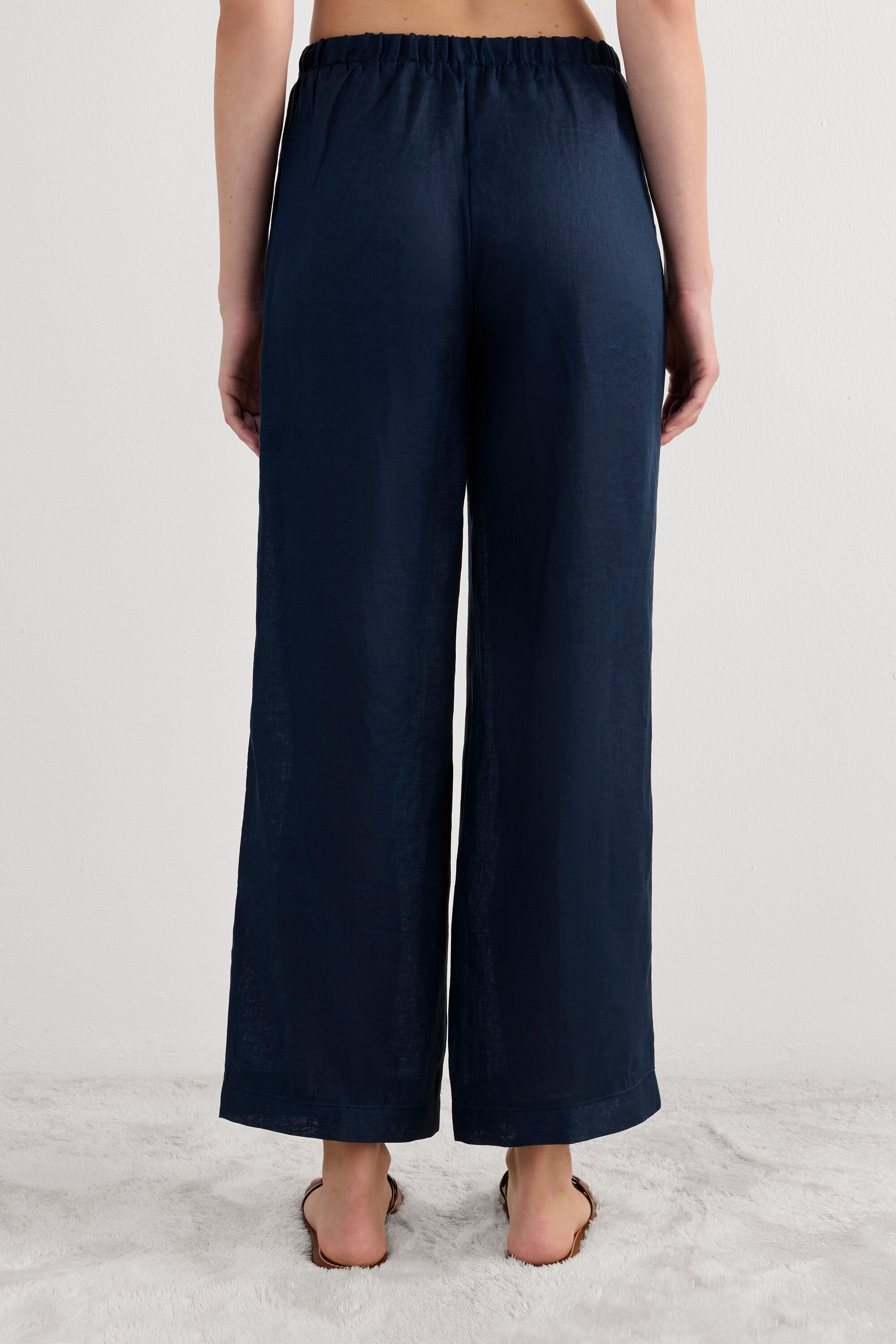 Full length pants in pure linen fabric. Very practical and comfortable, they are perfect for a casual style and also to wear as comfy pajama pants.