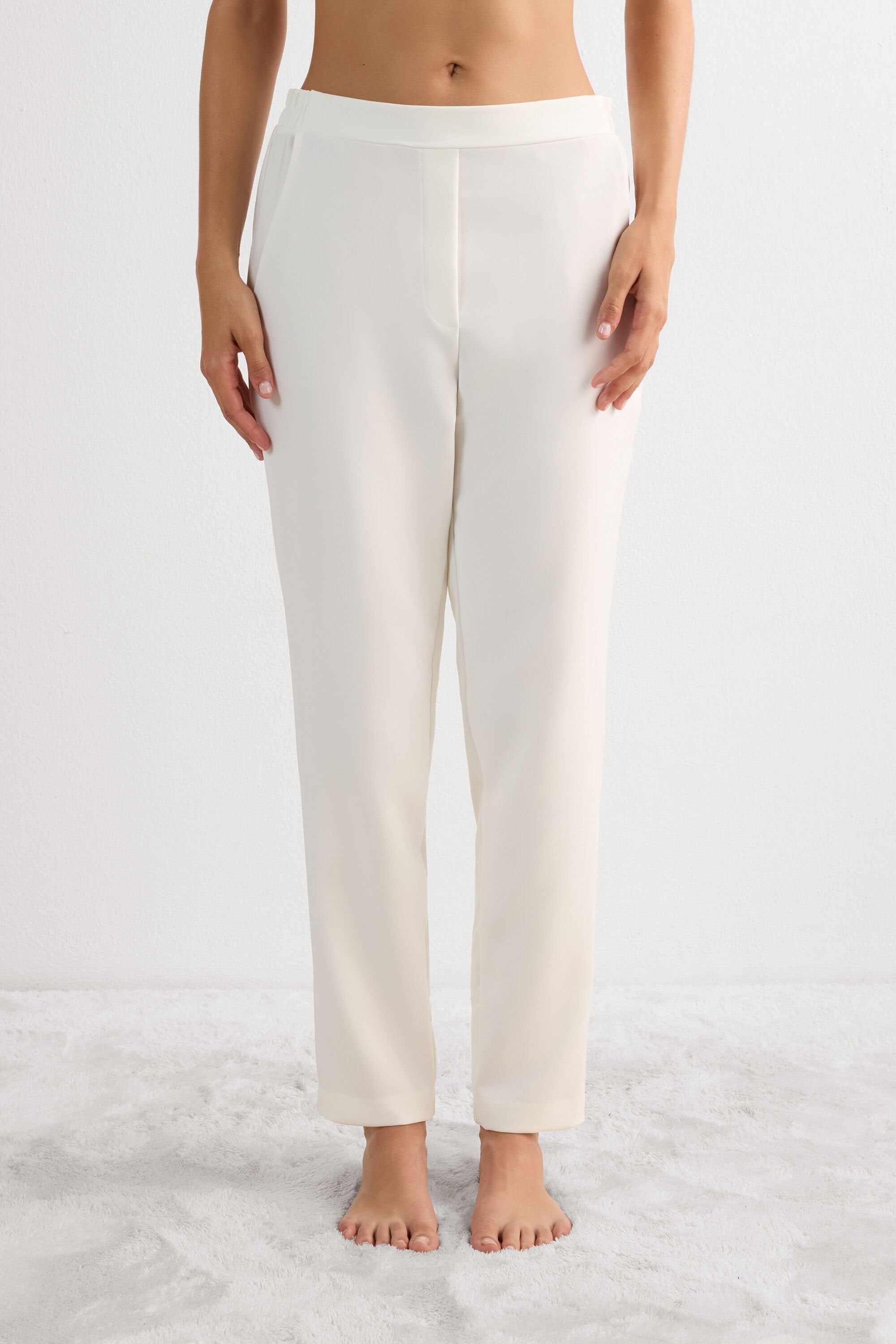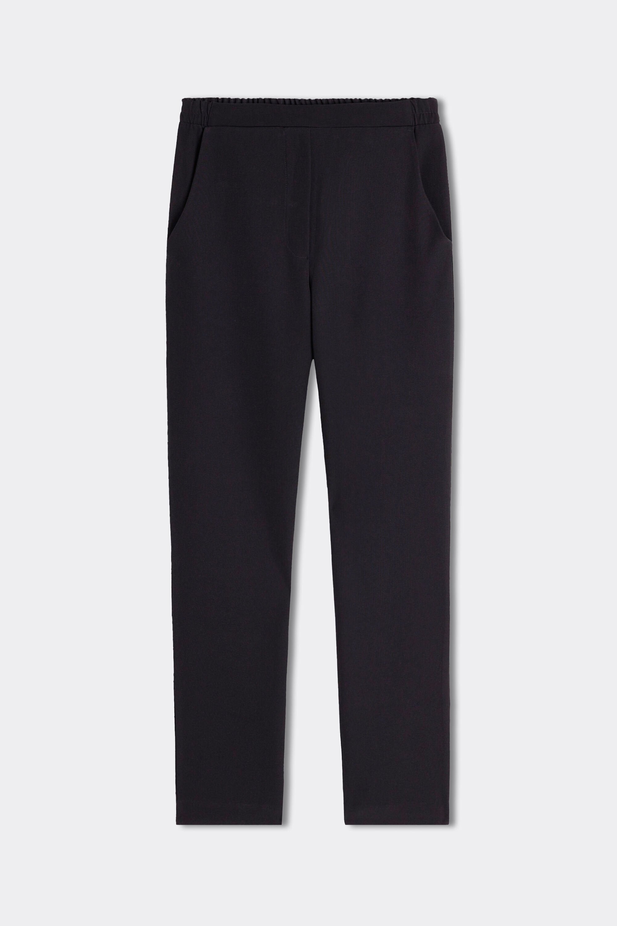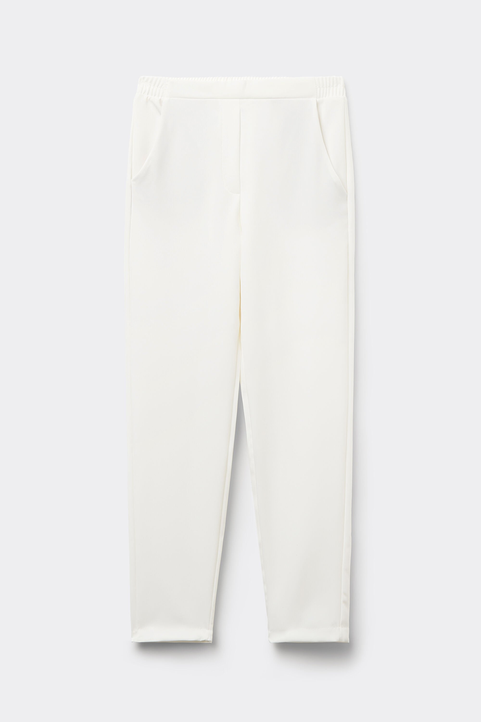 These full-length trousers feature two functional pockets and a faux back pocket for a sleek silhouette. The covered elasticated waist ensures all-day comfort without sacrificing style.