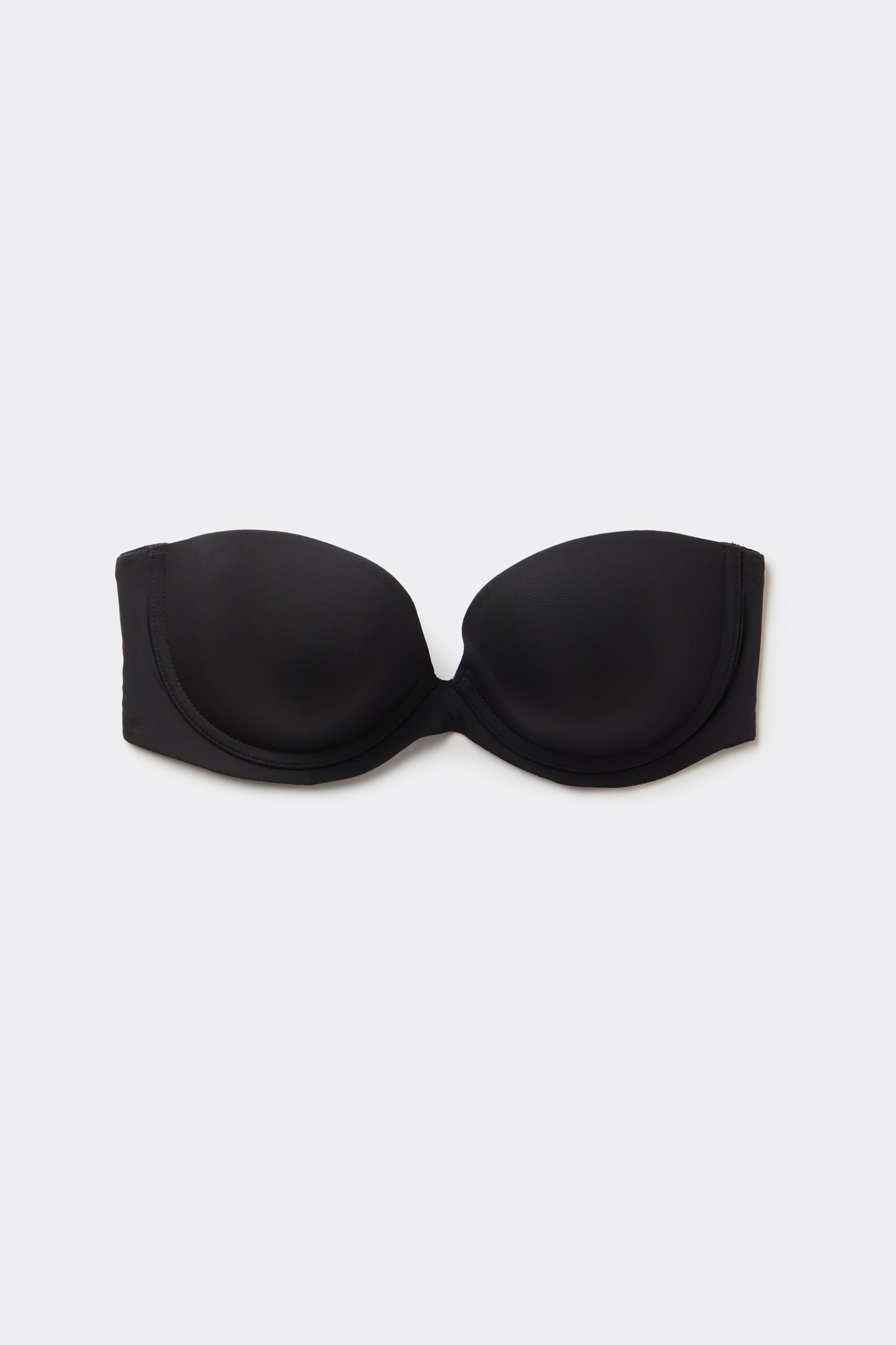 This bandeau bra is crafted from ultralight microfiber with a soft-touch feel, featuring underwire and lightly padded pre-formed cups for gentle support. Soft side boning helps shape and contain, while a lined tulle band with a siliconized panel and hidden hooks allows you to convert the straps for a custom fit. The removable, fully adjustable elastic straps and plunging neckline offer versatility and a flattering silhouette.