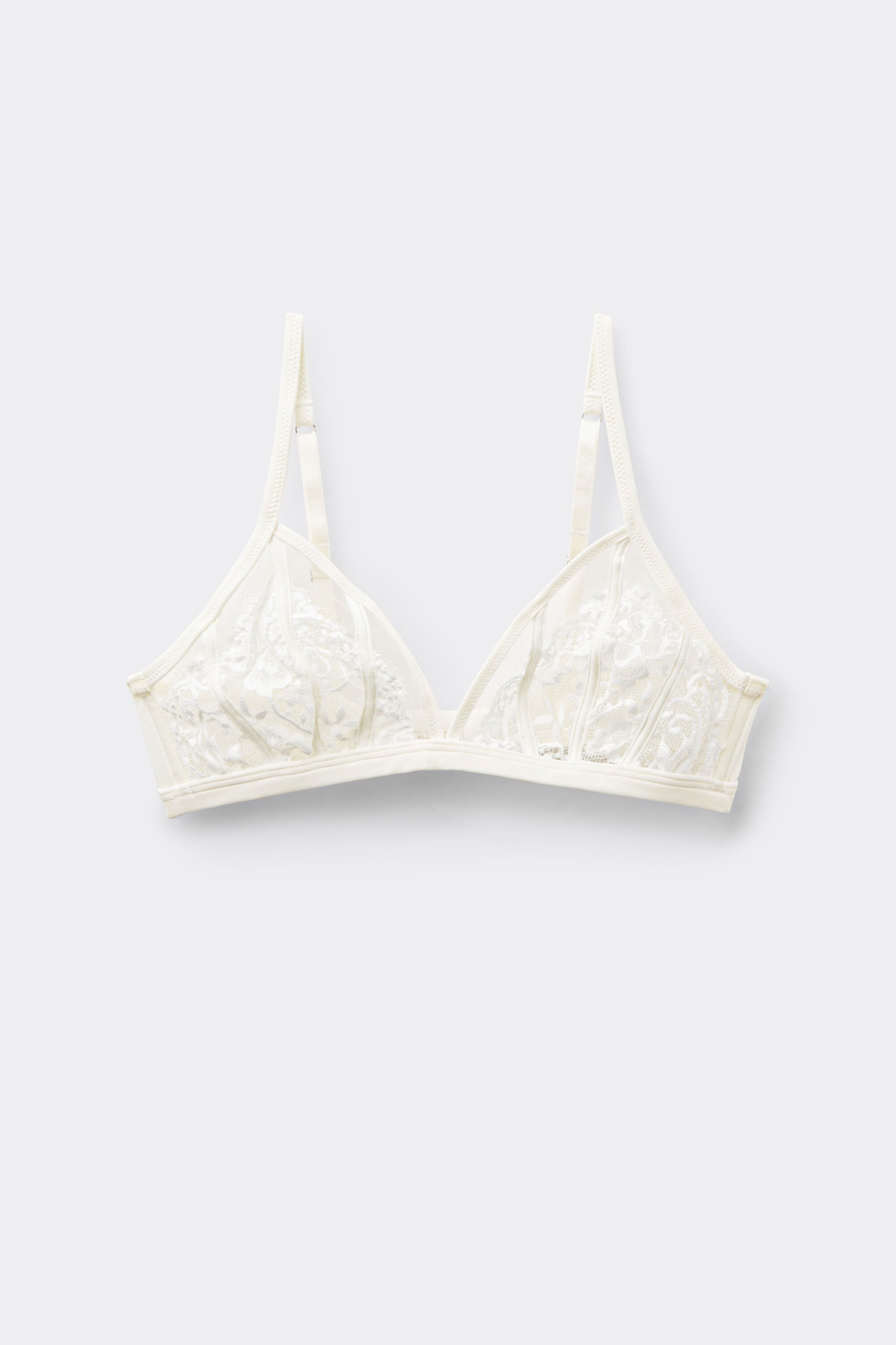 This triangle bra artfully combines the elegance of romantic eyelash lace with the whisper-light sensuality of see-through tulle. The subtle ribbing on the cups adds a hint of playful, seductive shape, while the soft microfiber trim ensures a gentle, comfortable embrace against your skin.