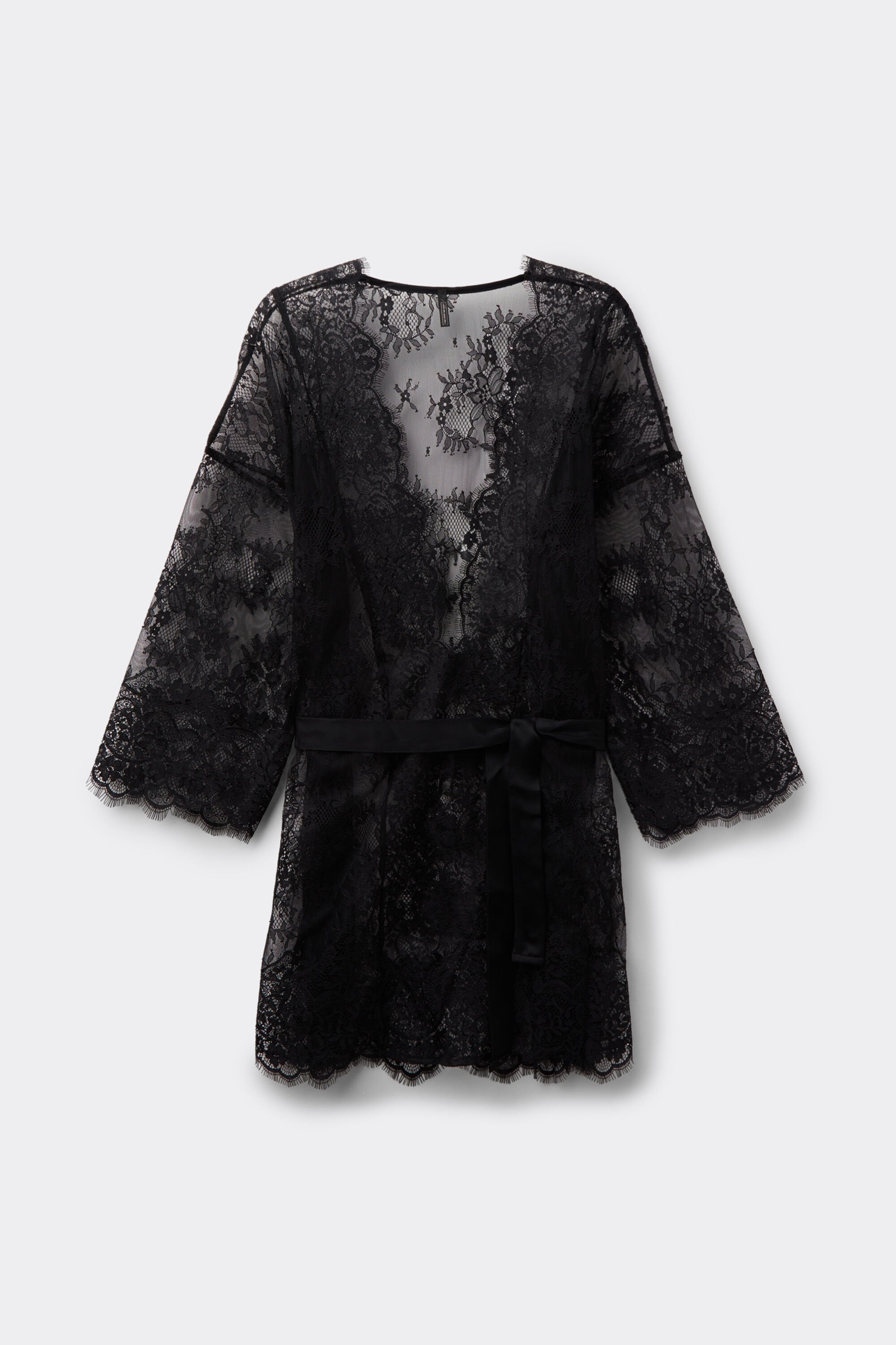 Layer it as a kimono over a slip dress or a sleek pantsuit to add a touch of romantic allure to any outfit.