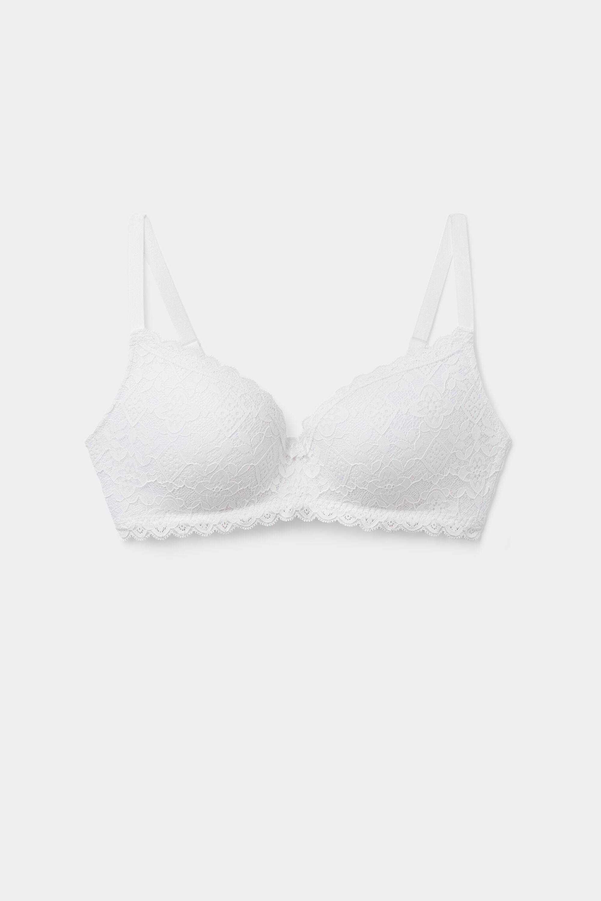 This triangle bra is made from soft stretch lace, offering a gentle embrace that shapes and rounds the bust for a naturally flattering silhouette.