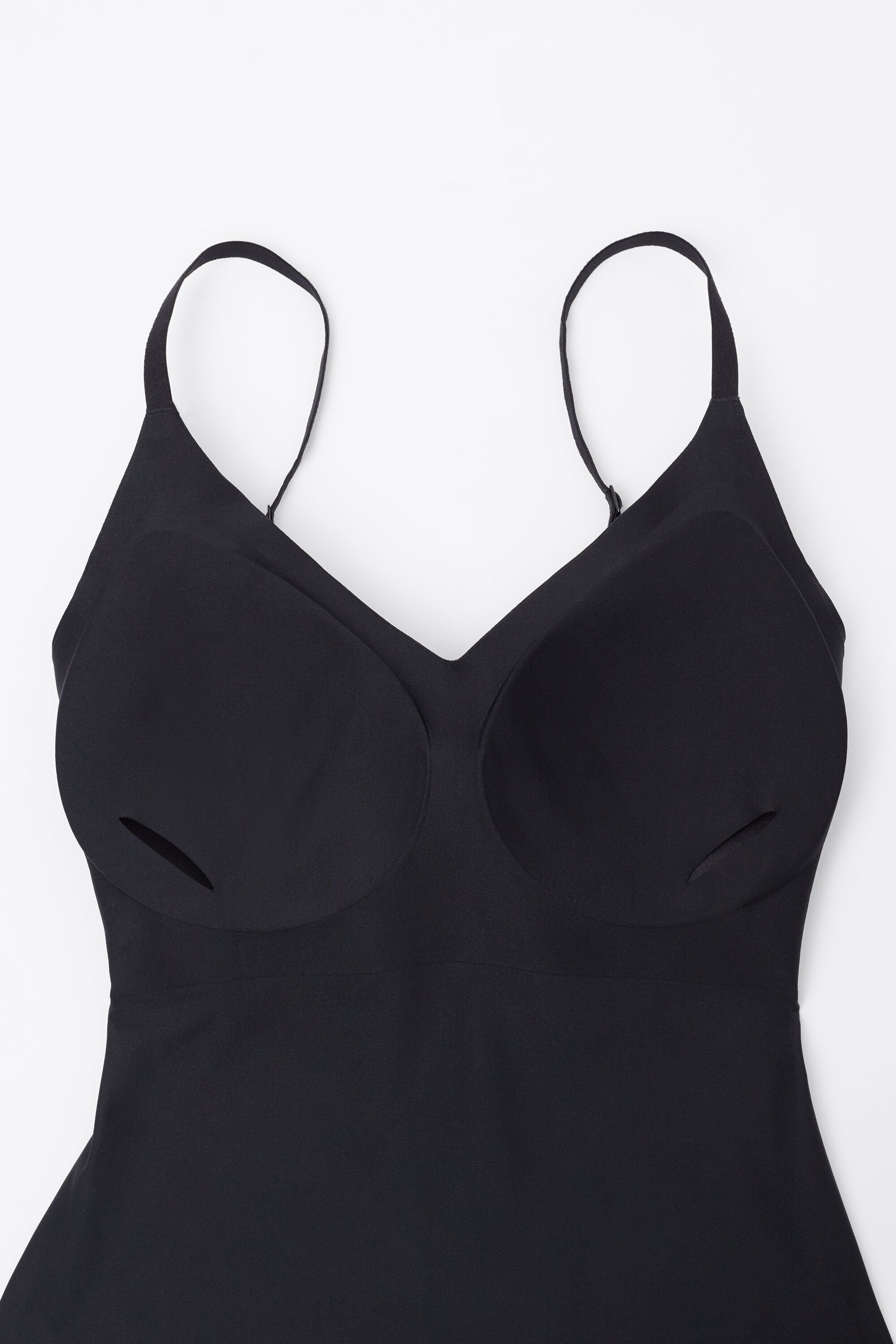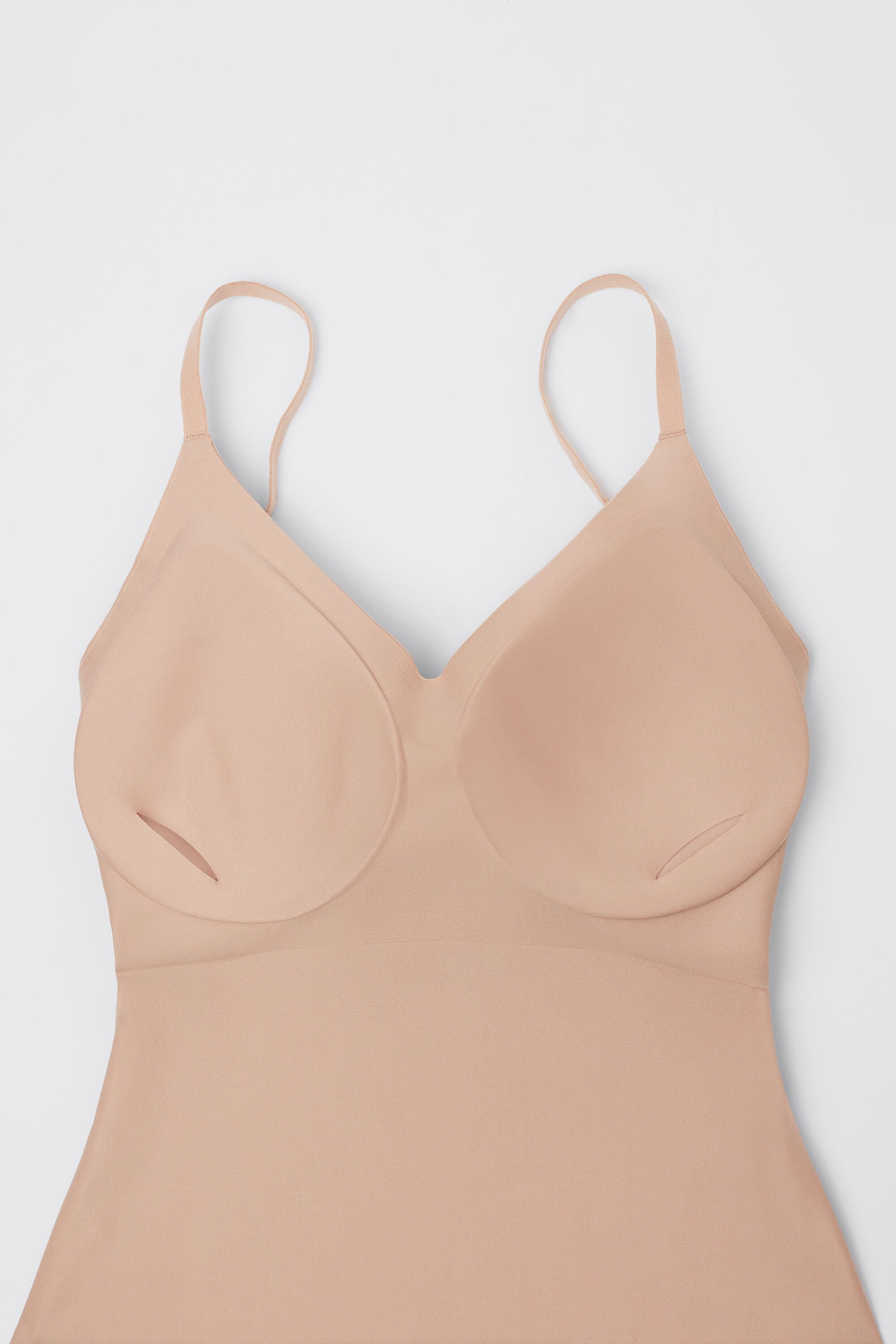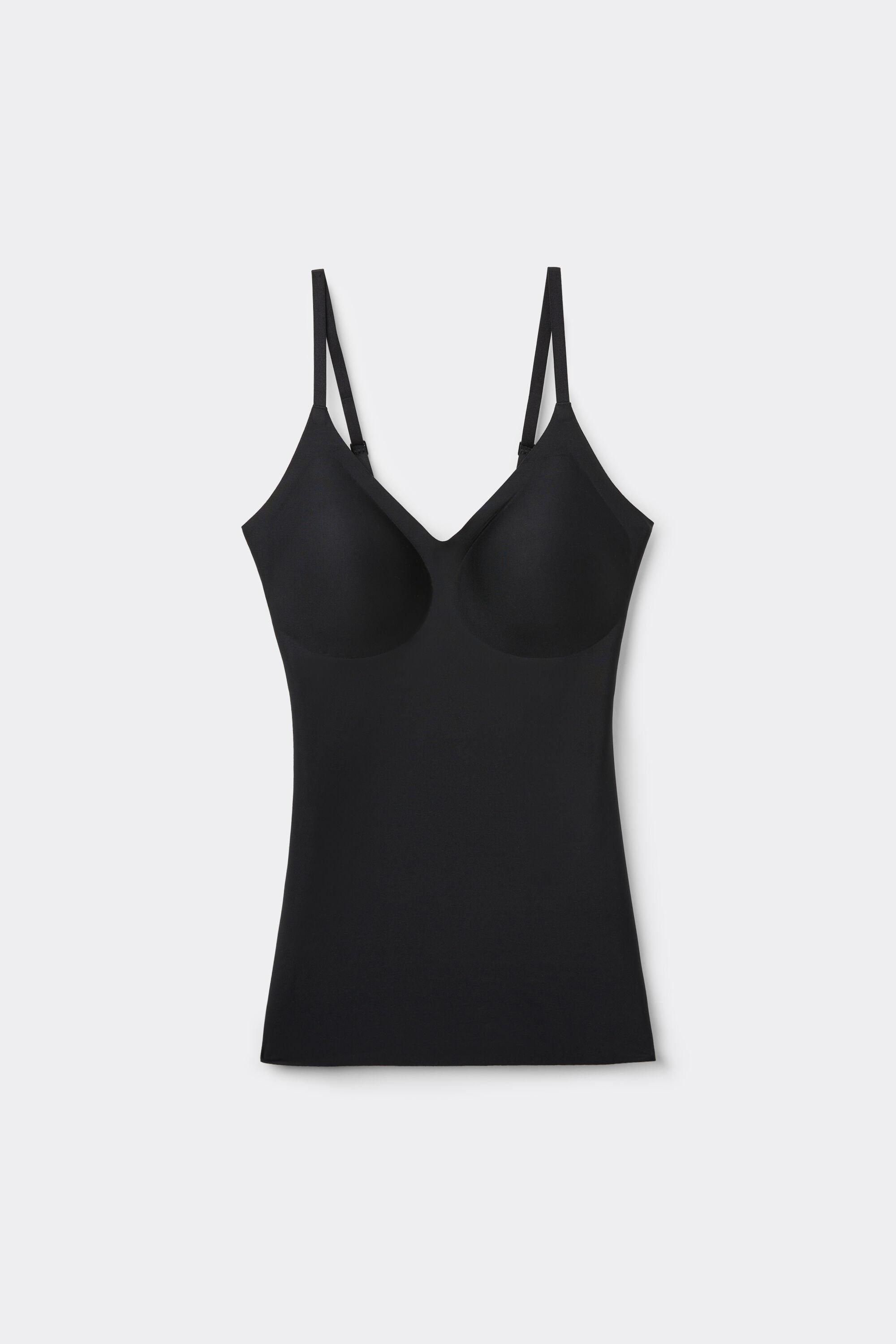 This top features a seamless, soft microfiber construction for an invisible effect under clothing. It is form-fitting and comfortable, designed to enhance your waistline and move fluidly with your body. For a subtle boost, removable demi-lune padding can be inserted into the cups.