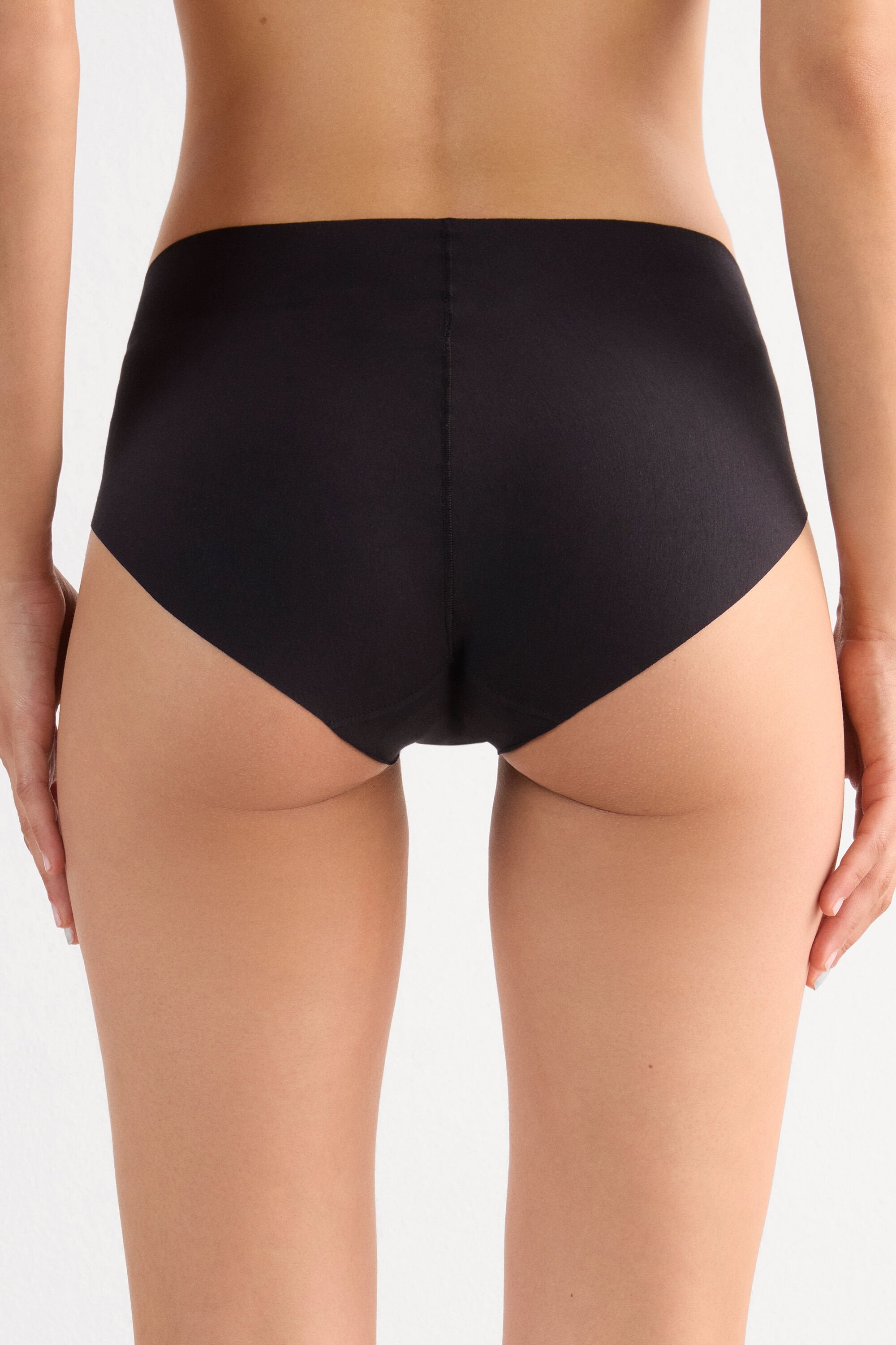 Seamless panties with a raw edge trim, crafted from soft, light stretch modal fabric. They are especially form-fitting in the back with a flat central seam that provides a perfect, smooth silhouette.