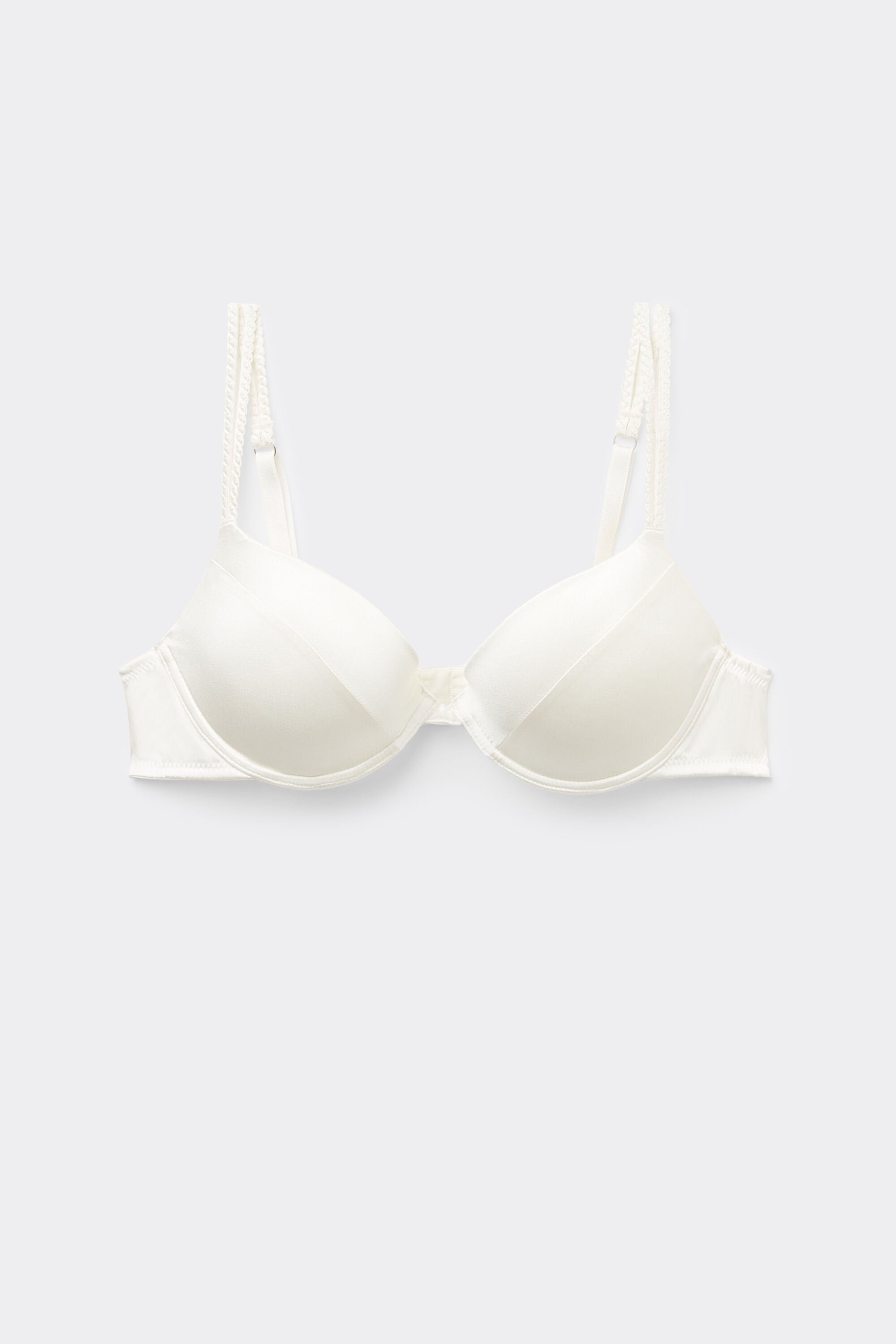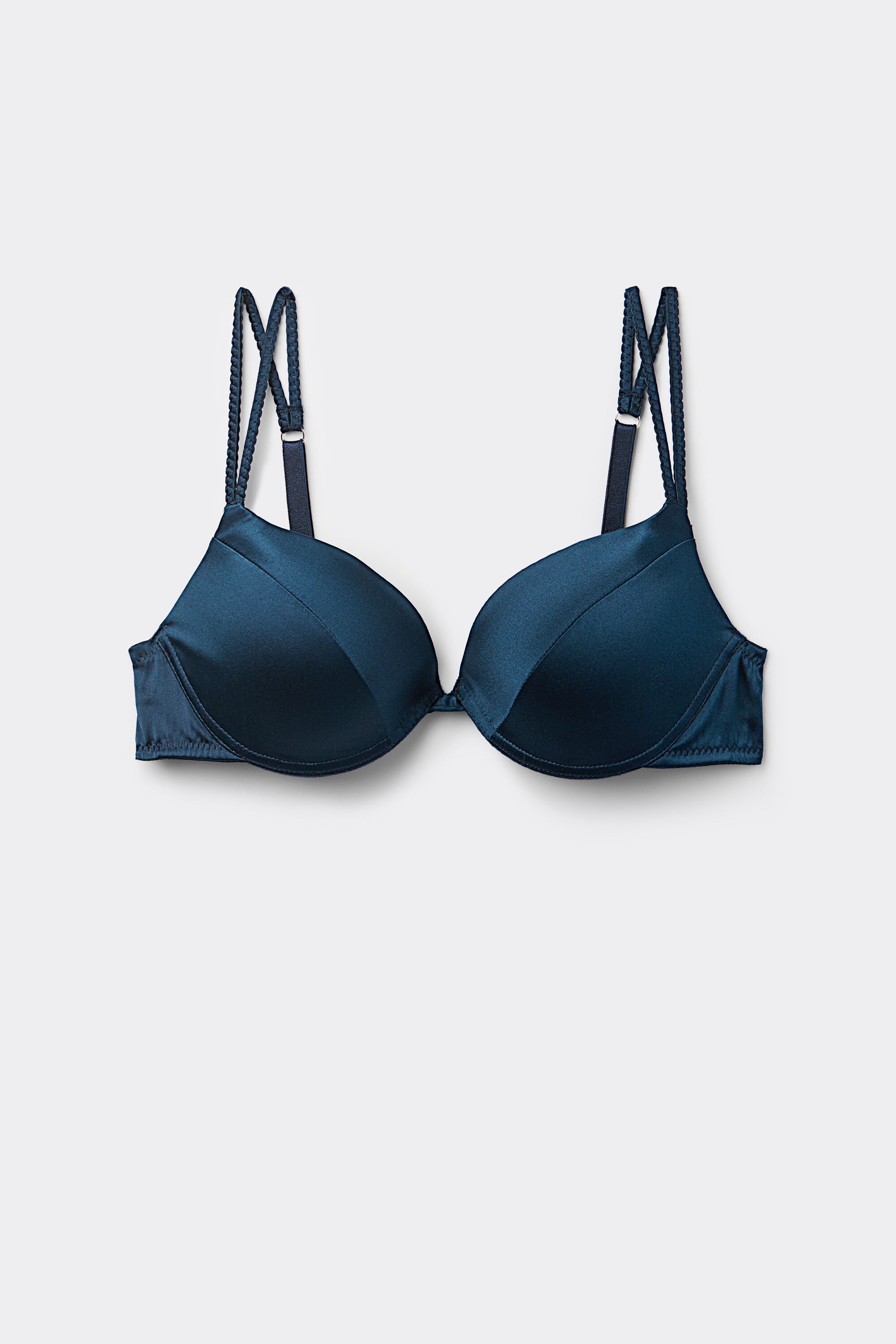 This slightly padded underwired push-up bra is styled in silk with elegant braided double shoulder straps and imperceptible stitching for a seamless look. It offers a natural shape and light support in a simple, yet refined silhouette.