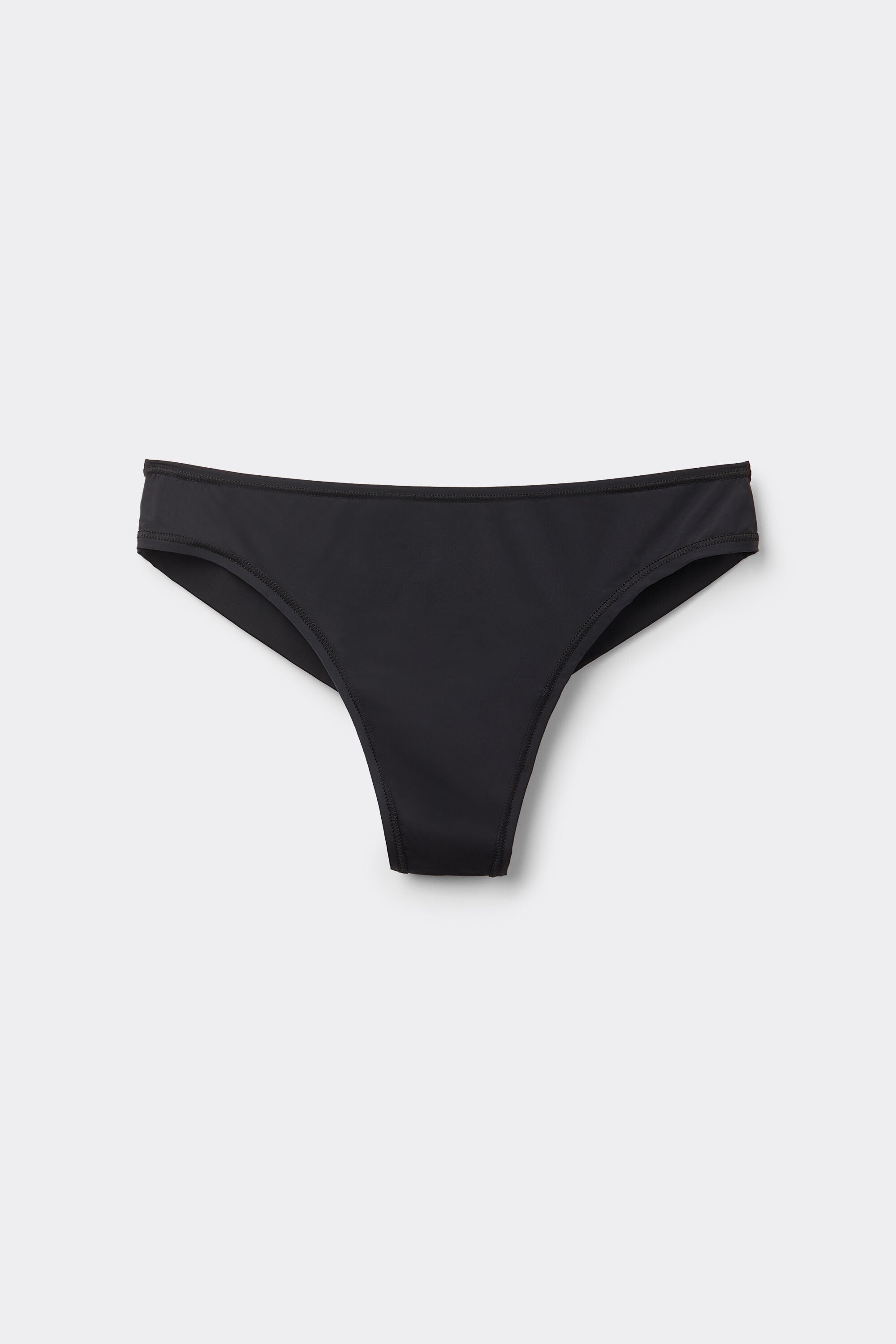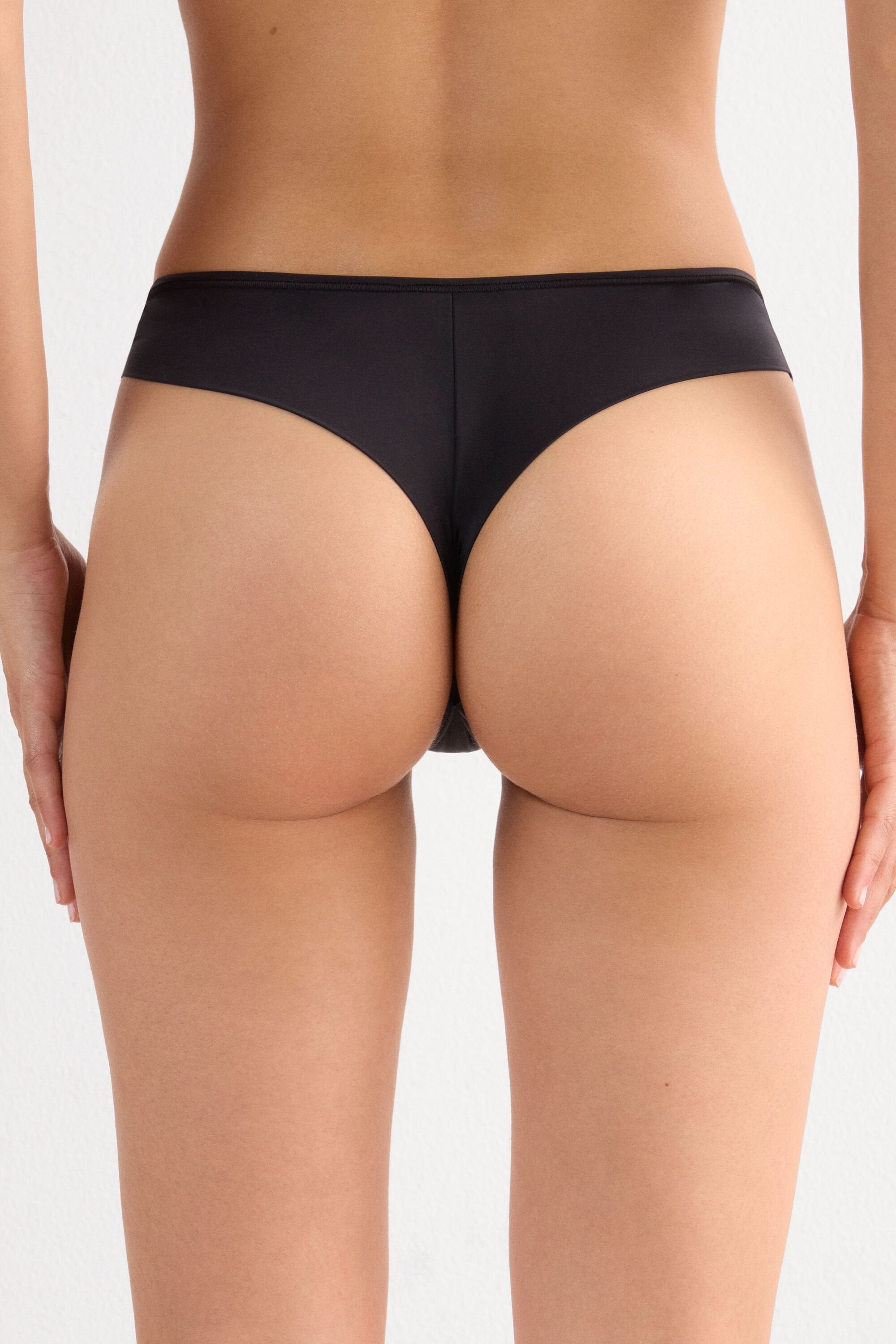 These Brazilian panties are crafted from ultralight microfiber with flat seams and a lined back for a seamless look, featuring a 100% cotton gusset for comfort. The fabric is known for its incredibly soft, ultrafine touch that feels almost weightless against the skin.