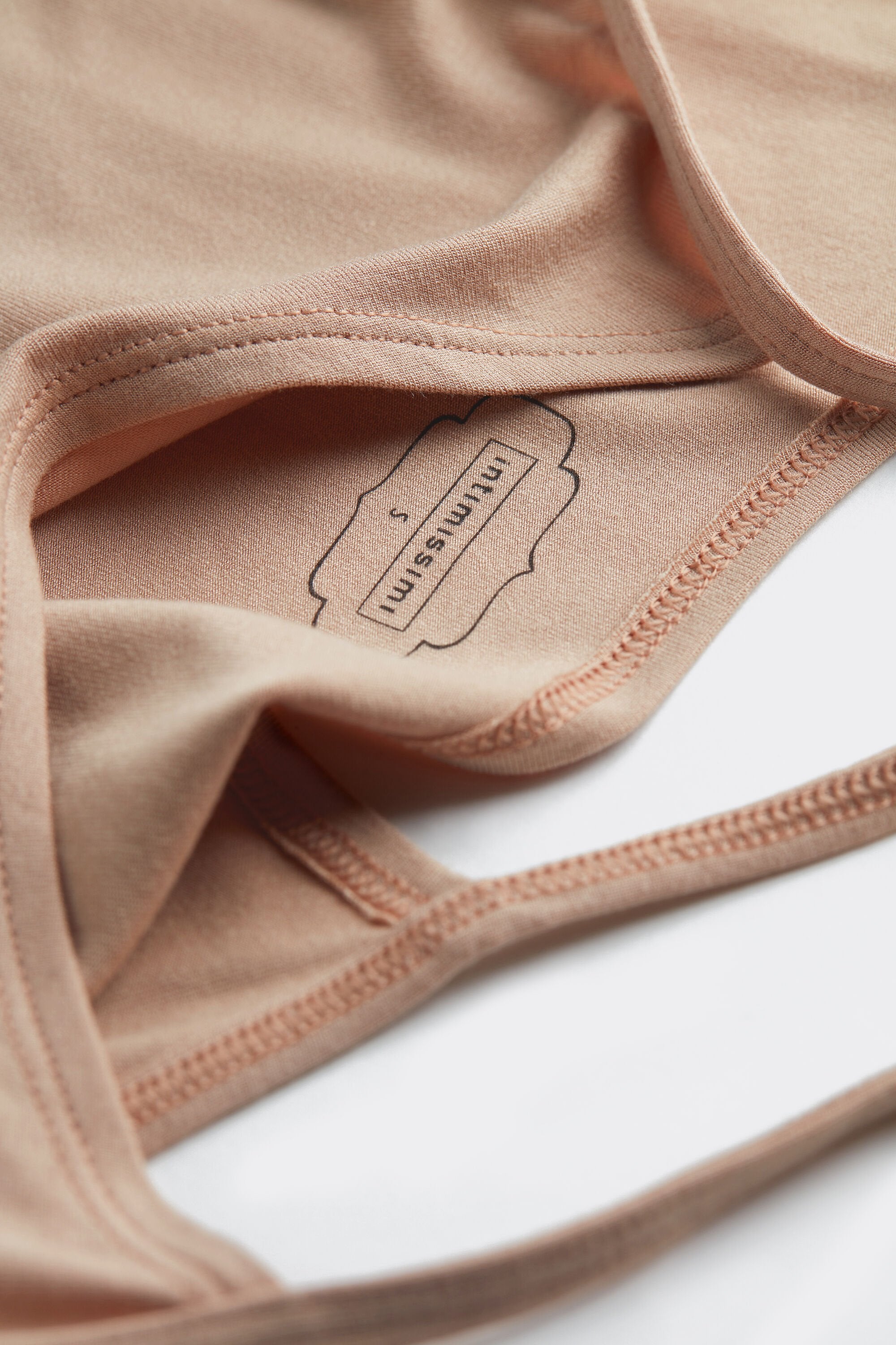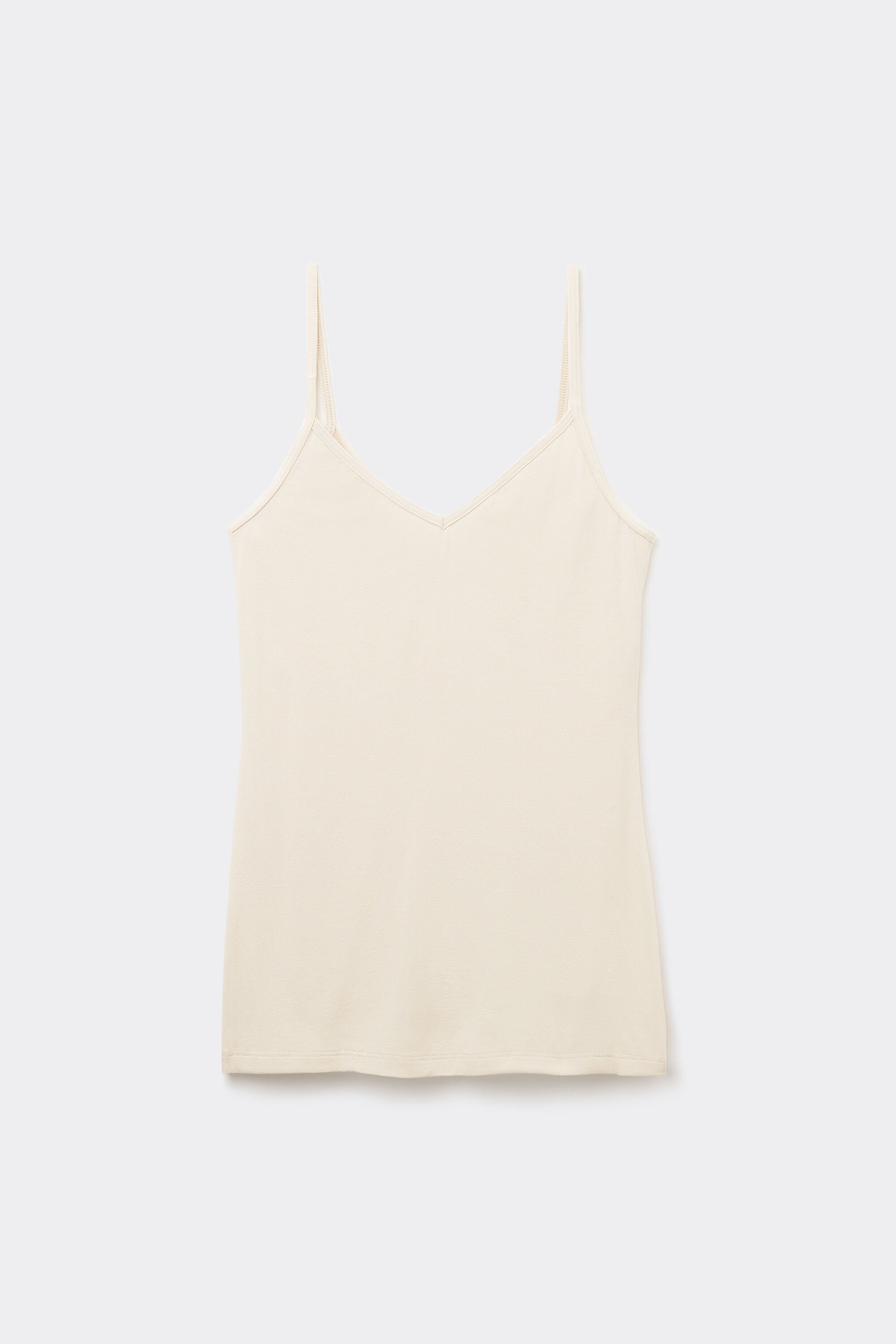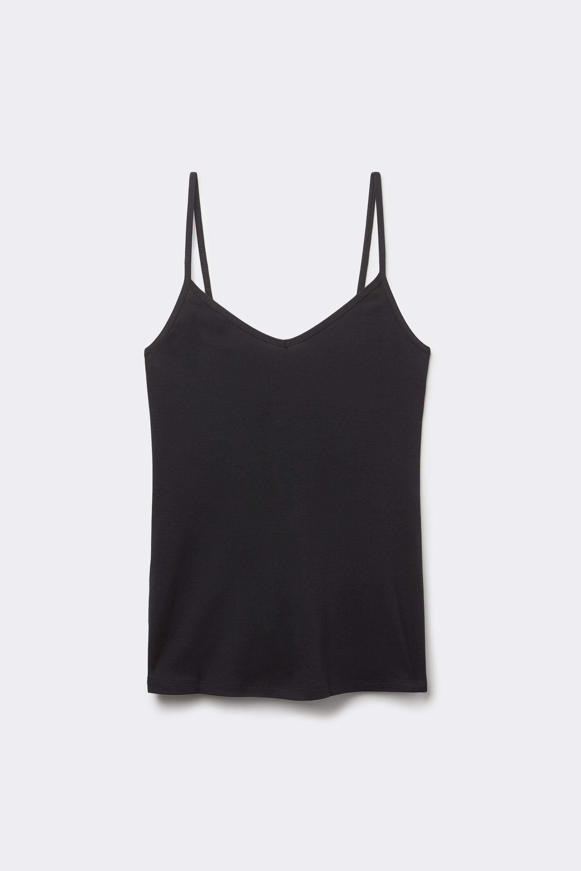 This soft modal top features delicate spaghetti straps and a versatile design that can be worn with the front or back as you please, offering a flattering and airy fit.