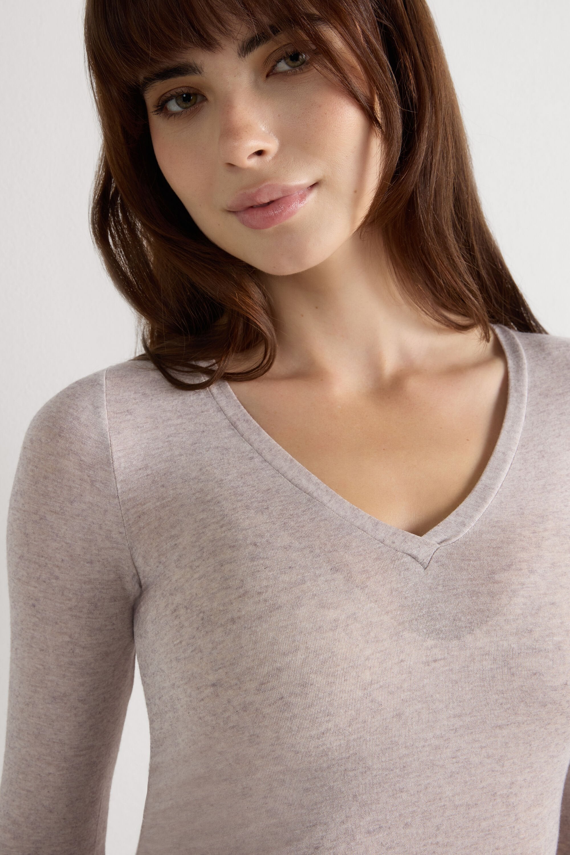 This long sleeve V-neck top is crafted from a soft, ultra lightweight modal and cashmere blend that drapes beautifully and softly hugs your silhouette.