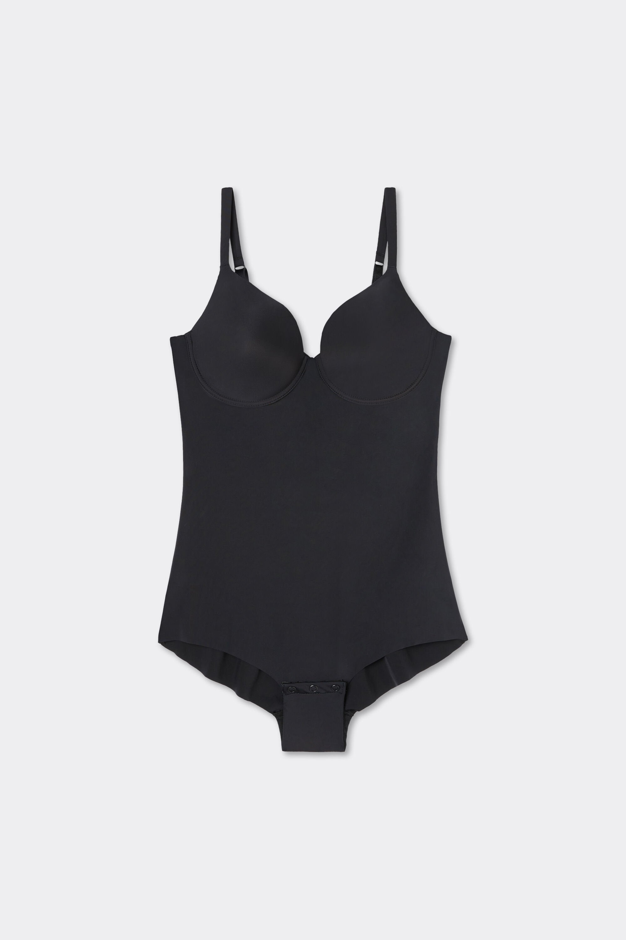 The bodysuit features seamless, super-lightweight padding and underwire cups for gentle shaping and support. The adjustable thin straps and teardrop back opening with a hook-and-eye closure allow for a personalized, comfortable fit that moves with you.
